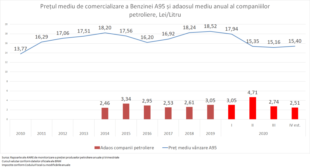 În trimestrul IV când prețurile la benzină au început să crească, companiile petroliere au cel mai mic adaos din ultimii doi ani.