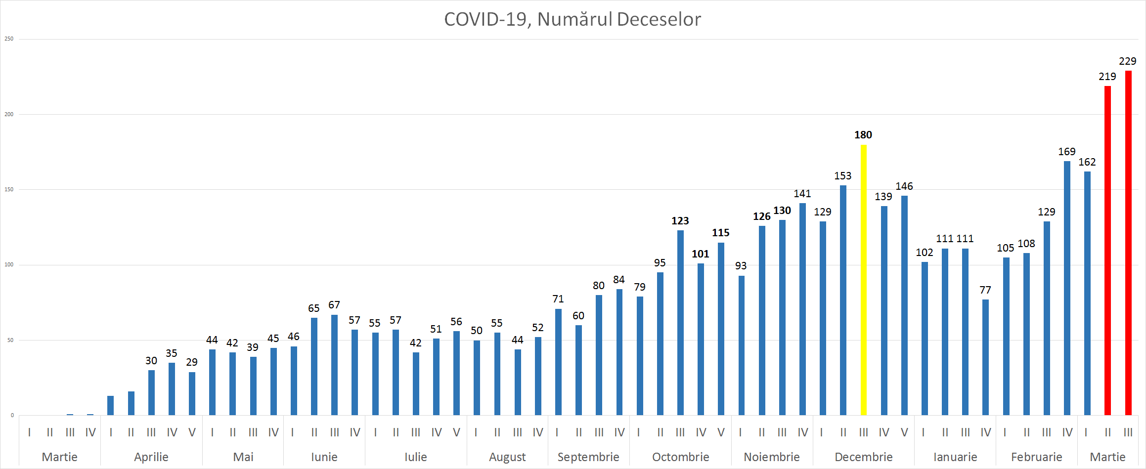 Tendința din nefericire este una destul de alarmantă. Media lunară a cazurilor de deces provocate de COVID-19 înregistrează o tendință de creștere și este de două ori mai mare decât acum o lună.