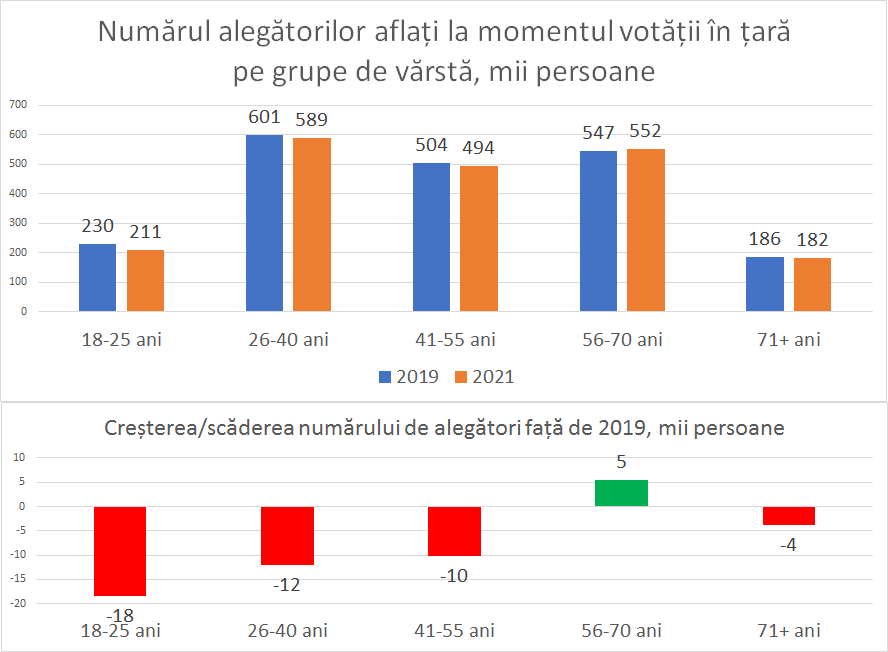 Unica grupă de vârstă care a înregistrat creștere este cea cuprinsă între 56-70 ani, care s-a majorat cu 5 mii de persoane de la ultimul scrutin parlamentar.