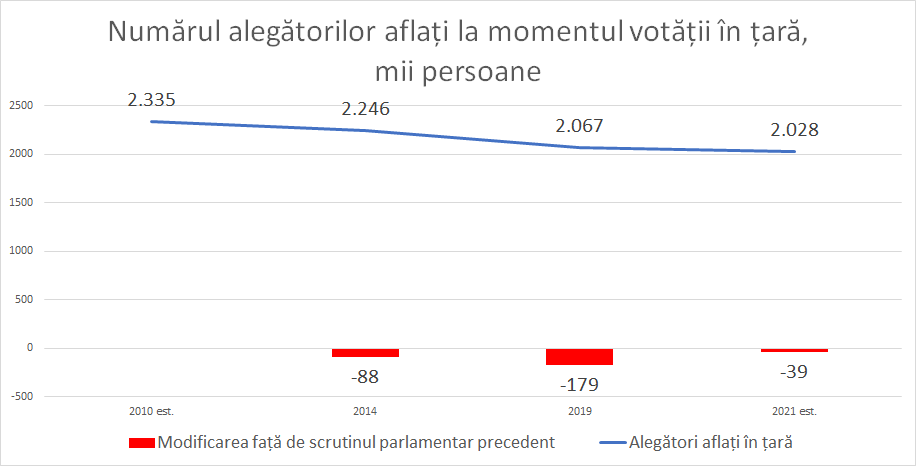Reducerea numărului de alegători din țară este cauzat de doi factori: 1) scăderea cu 4 mii persoane a numărului populației cu vârsta mai mare de 18 ani și 2) emigrarea în această perioadă a 35 mii persoane cu vârsta mai mare de 18 ani.