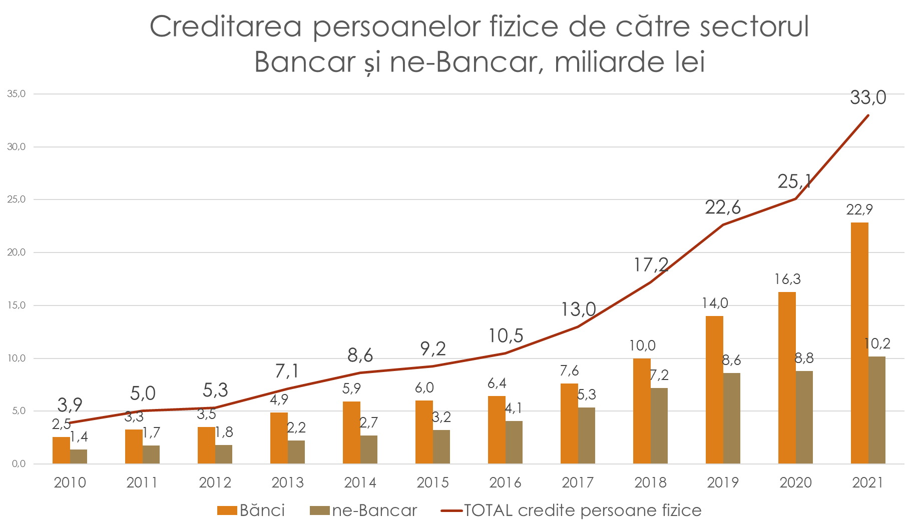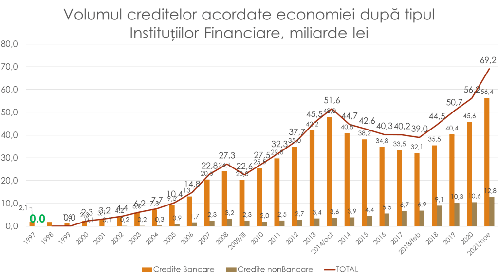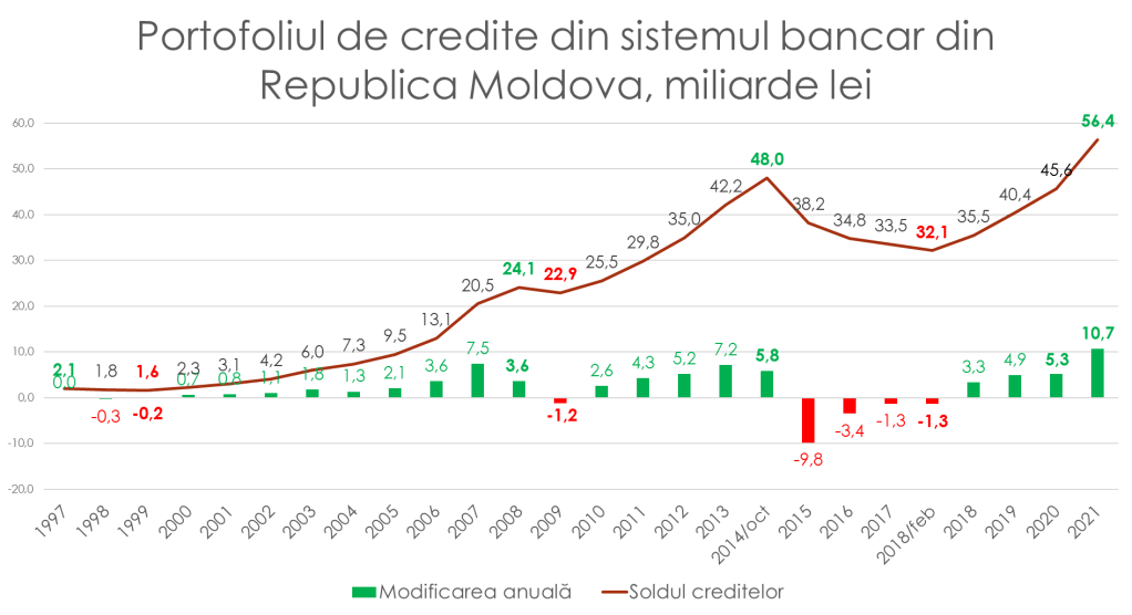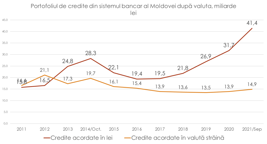 În 2021, în Republica Moldova a fost înregistrată o creștere fără precedent a creditelor acordate