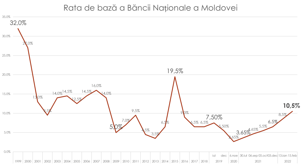 Potrivit expertului, o rată de bază mică – încurajează creditarea, iar una mare – descurajează. În 2020, BNM a scăzut rata de bază la 2,65%, cel mai mic nivel din istoria țării, deoarece era pandemie, criză, iar oamenii nu cheltuiau bani. Rata de bază a fost scăzută cu scopul de a stimula consumul în rândul cetățenilor și a reanima economia. Din a doua jumătate a anului 2021, BNM a început ridicarea ratei de bază, în anticiparea efectelor inflaționiste, care au început să se manifeste foarte puternic. Rata de bază scăzută a alimentat puternic consumul populației și accesul fără precedent la creditele de consum. Timp de jumătate de an a fost ridicată rata de bază de șase ori, în încercarea de tempera intrarea de bani în economie, care alimenta inflația.