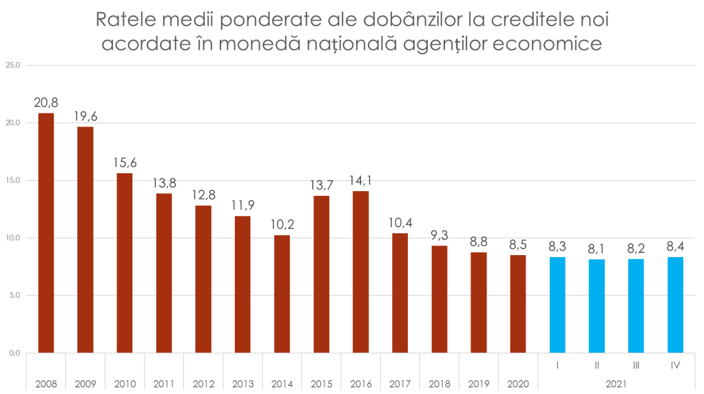 În cazul agenților economici, situația practic nu s-a schimbat. Rata dobânzilor în trimestrul II anul trecut era la cel mai scăzut nivel – de 8,1%, iar în trimestrul IV a ajuns la 8,4%, cu 2,4% mai mare. Astfel, îngrijorarea majorității experților și a actorilor politici că majorarea ratei de bază a BNM va duce la scumpirea creditelor pentru agenții economici nu s-a adeverit.
