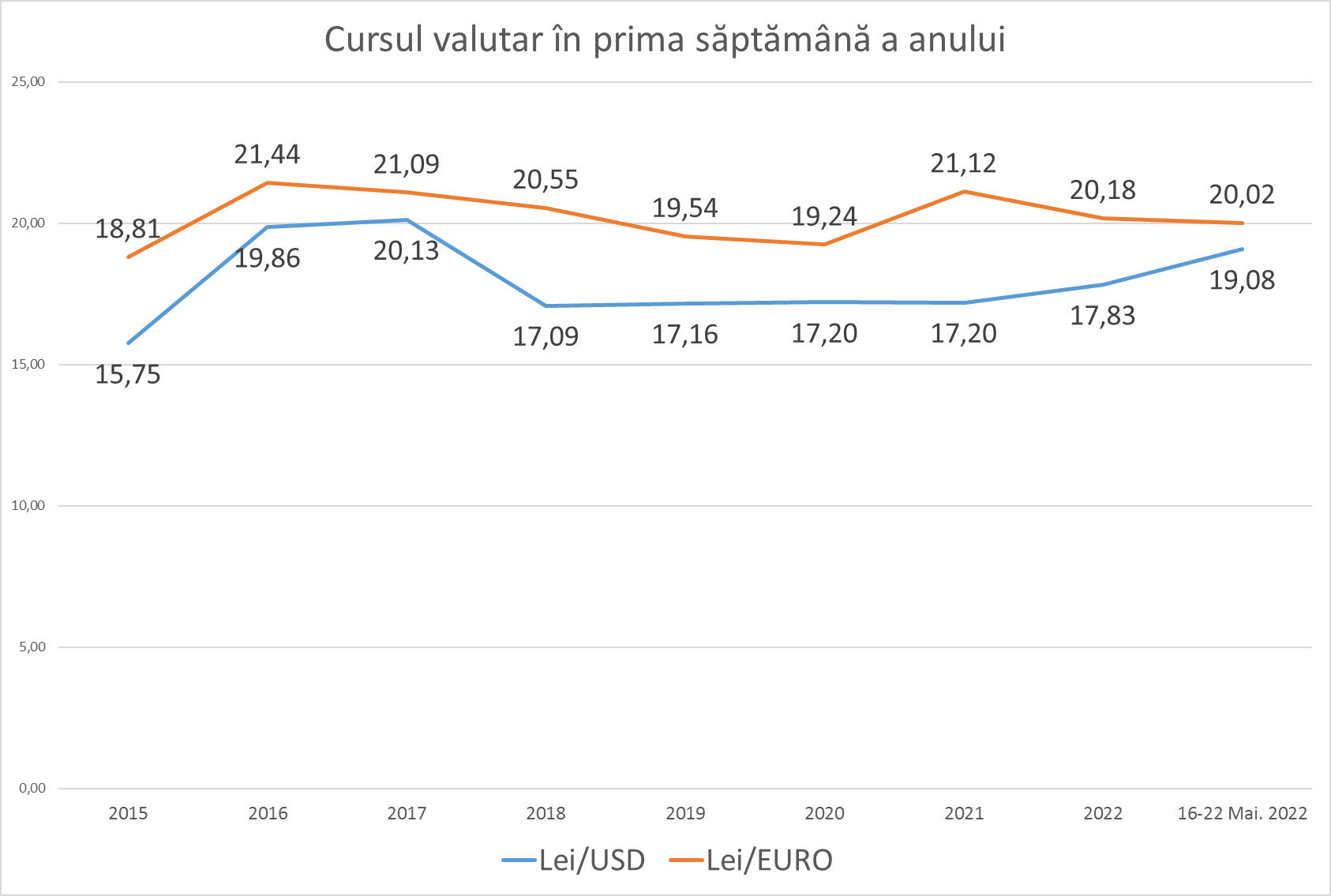 Față de perechea valutară EURO&USD leul moldovenesc are o poziție stabilă în ultimii 7 ani. Astfel, chiar dacă pe parcursul anului asistăm la o fluctuație de +/- 10% față de aceste două valute, totuși în fiecare an cursul valutar față de EURO&USD este relativ la fel. În prezent avem o tendință clară de apreciere a dolarului american care este cu aproape 2 lei sau 11% mai puternic decât în ultimii ani. Euro din contra a înregistrat o depreciere ușoară în ultimii doi ani. Însă această evoluție este cel mai mult determinat de contextul internațional și mai puțin de cel local.