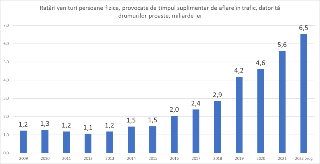 Însă pe lângă pierderile directe, agenții economici și populația mai suportă și pierderi indirecte, determinate de ratări de venituri. Aceste ratări sunt cauzate de timpul suplimentar de aflare în trafic, timp care în mod normal trebuie să fie utilizat pentru activități productive. În loc să fim la locul de muncă, noi stăm în trafic. Ratările de venituri în acest an le estimăm la 6,5 miliarde lei.