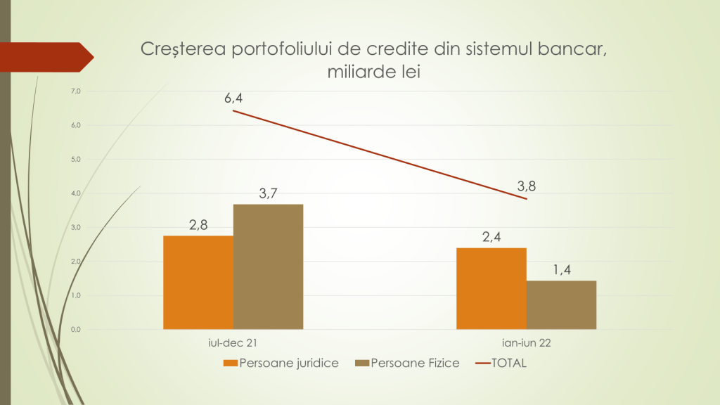 „Avem o schimbare a focusului. În prezent agenții economici se împrumută din ce în ce mai mult de la bănci. În jumătate de an volumul creditelor a crescut cu 3,6 miliarde de lei, de la 56,4 la 60,2 miliarde de lei. Însă, spre deosebire de alți ani, această creditare în acest an este dominată de creditele luate de către persoanele juridice, care au luat 2,2 miliarde de lei, iar persoanele fizice 1,4 miliarde de lei”, a afirmat economistul.