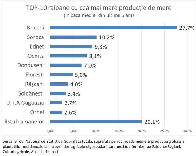 Raionul meu de baștina Strășeni se afla pe locul 12 cu 7-10 mii tone anual sau 2,2% din total.