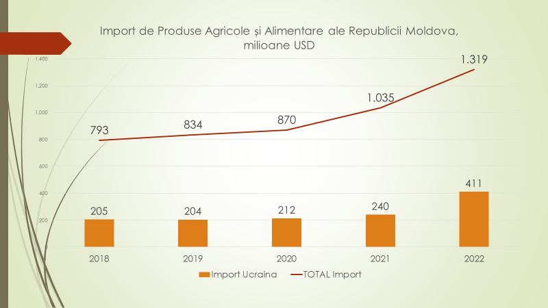 Potrivit economistului, comerțul Republicii Moldova cu Ucraina cu produse agricole și alimentare era la nivel de aproape 233 de milioane de dolari anual în 2020. Exporturile erau puțin peste 20 de milioane de dolari, iar importurile – puțin peste 212 milioane de dolari. De când a început războiul, importurile au crescut până la 411 milioane de dolari, iar exporturile – la 65 de milioane de dolari. „Ucraina, în perioada 2020/2021, deținea 25% din cota importurilor noastre, acum deține 31% și este legat de prețurile accesibile. Inclusiv, datorită importurilor din Ucraina la noi scade inflația, în special la produsele alimentare. Moldovenii vor economisi, comparativ cu 2022, la produsele alimentare, câteva miliarde de lei. Ucraina deține 31% din cota importurilor deoarece are cele mai ieftine produse alimentare. Să importăm mai puțin din Ucraina înseamnă că trebuie să importăm produse mai scumpe din altă parte. Importăm foarte mult deoarece avem o agricultură foarte slabă”, a afirmat economistul. Cât privește tot comerțul extern cu Ucraina, a afirmat că importurile, în valoare anuală, erau în 2020 – 870 de milioane de dolari, iar în 2022 au ajuns la – 1,3 miliarde de dolari.
