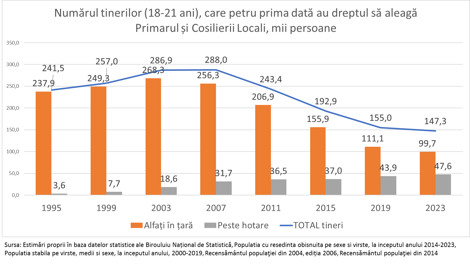 Migrația externă este factorul de bază, care determină ponderea redusă a tinerilor care vin la vot. Astfel în prezent 1/3 din toți din toți tinerii, care pentru prima dat au dreptul de a participa la alegerea Primarului nu se află în țară. Din cei 147, 3 mii estimăm că în țară se află maximi 100 mii persoane, iar circa 48 mii sunt peste hotarele țării. Dacă la alegerile locale din 2011 circa 15% din tineri se aflau peste hotare, în prezent ponderea celor aflați peste hotare s-a dublat și a ajuns la aproape 33%. Aici trebuie să adăugăm și migrația externă de scrută durată, mai mică de un an, în care sunt antrenați cel puțin alte 5 mii tineri. În consecință numărul tinerilor, care pentru prima dată vor merge la vot și vor fin în țară pe 5 noiembrie 2023 nu va depăși 95 mii persoane.