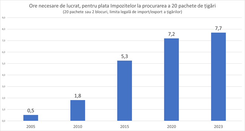 Experiența țărilor din zonă arată clar că odată cu creșterea accizei la produsele de tutun, crește și interesul economic față de comerțul ilicit cu produsele de tutun. Atunci când veniturile din frauda fiscală de la importul „legal” de țigări este egal cu salariul pentru o zi sau chiar mai mult, interesul pentru comerțul ilicit crește exponențial. Dacă în 2005, Republica Moldova practic nu impozita țigări, și la noi lipsea comerțul ilicit, exista doar contrabanda din Republica Moldova spre alte țări, dar nu exista contrabandă din alte țări în Republica Moldova. Începând cu anul 2021, când frauda fiscală la importul a două blocuri de țigări, pentru comercializare, este egal cu salariul de o zi, interesul pentru comerțul ilicit a început să se dezvolte vertiginos. Pentru comparație, în România, povara fiscală este de 11,6 ore, cea ce creează un interes și mai ridicat pentru comerțul ilicit, iar pierderile bugetare ale României depășesc 650 de milioane de euro anual.