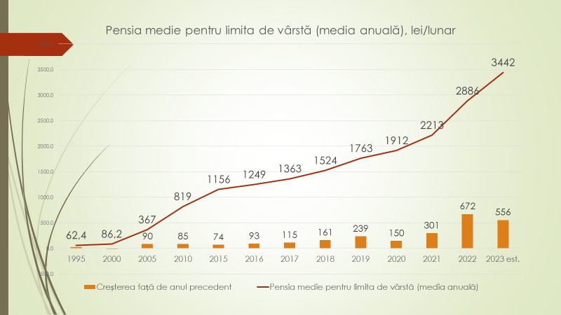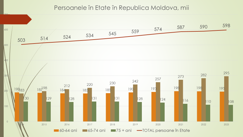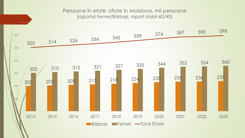 Potrivit expertului, majorarea numărului de pensionari este legată de creșterea nivelului de trai, care le-au adus o viață mai lungă. Astfel, ei au crescut ca număr, dar și ca pondere. Când  numărul populației se reduce dramatic, numărul celor în vârstă crește vertiginos. În 1959, 7,7% din populație era în etate. După aceasta, a continuat să crească constant, odată cu creșterea calității vieții și a speranței de  viață. În 2020, persoanele în vârstă aflate pe teritoriul Republicii Moldova au ajuns să reprezinte 21,7% din populație. Astăzi, în 2023, sunt aproape 24%.