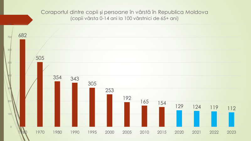 Analistul economic a afirmat că în 1960 erau 682 de copii la o sută de persoane în etate. Fiecare bunel/bunică avea până la 7 nepoți. În 2020 erau 129 de copii la 100 de bunei/bunici, iar în prezent – 112 copii la 100 de persoane în etate. „La noi, numărul persoanelor în vârstă crește, iar numărul de copii scade. Avem în prezent un nepot la un bunel/bunică. Situația devine tot mai dificilă. Oare cine va plăti pensie celor tineri care sunt astăzi, când practic nu avem copii”, a afirmat analistul economic.
