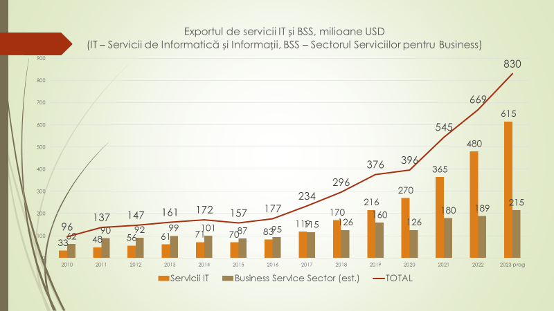 Potrivit expertului, aceste două sectoare au cea mai dinamică creștere în ultimii ani, devenind cele mai mari ramuri de export ale Republicii Moldova. În timp ce alte ramuri de export au suferit în ultima perioadă, inclusiv din cauza războiului dus de către Federația Rusă în Ucraina, sectoarele IT și BSS se bucură de investiții, deoarece prezintă un risc mai scăzut. Totodată, sectorul IT, în prezent, este cel mai puternic din punct de vedere al salariilor și este cel mai dinamic după numărul de salariați. De asemenea, sectorul IT trebuie privit ca o ramură a economiei cu cel mai mare potențial de reîntoarcere a diasporei acasă și de angajare a tinerilor din țară, care, în caz contrar, vor alege să migreze din țară.