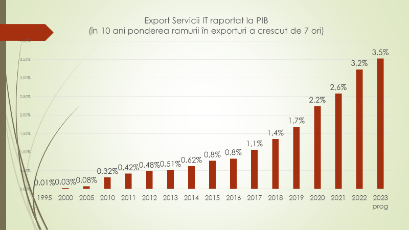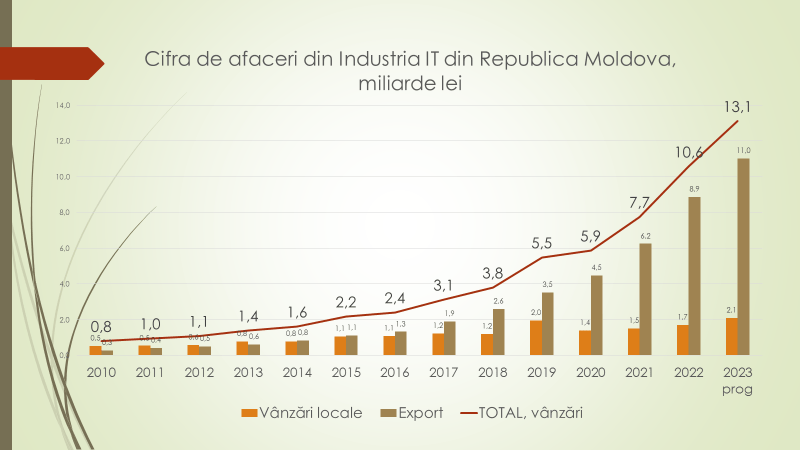 Sectorul Tehnologiilor Informaționale (IT) și cel de Servicii pentru Business (BSS) sunt lideri, începând cu 2023, în exporturile Republicii Moldova. Aceste două ramuri ale economiei moldovenești vor asigura, în acest an, un volum al exporturilor de servicii de circa 830 de milioane de dolari, reprezentând circa 28% din totalul exporturilor moldovenești de servicii. „Aceste două sectoare acum 15 ani practic nu existau în Republica Moldova. Sunt efectul apropierii Republicii Moldova de Uniunea Europeană (UE). Sunt efectul investițiilor străine directe în țara noastră. Sunt două sectoare care au generat locuri de muncă, investiții și exporturi”, a declarat Veaceslav Ioniță, expert în politici economice la Institutul pentru Dezvoltare și Inițiative Sociale (IDIS) „Viitorul”, în cadrul ediției de vineri, 15 decembrie, a emisiunii „Analize economice cu Veaceslav Ioniță”.