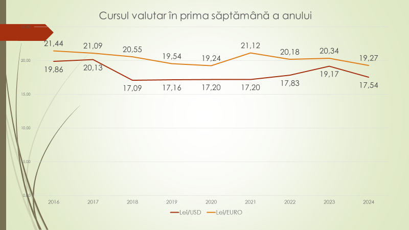 Potrivit expertului, o diferență este remarcătă în ultimii opt ani. Practic, după 2016, în fiecare an, la început de an, leul moldovenesc a fost mai puternic decât anul precedent. În această perioadă, doar de două ori leul moldovenesc a fost mai slab. În rest, a fost mai puternic. Acum, leul moldovenesc, în mediu, este cu 10% mai puternic față de euro și dolar decât a fost în 2016. În 2016, erau necesari 21 de lei și 44 de bani pentru 1 euro la începutul anului, în 2024 – trebuie 19 lei și 27 de bani. Tot în 2016, erau necesari 19 lei și 86 de bani pentru 1 dolar la începutul anului, în 2024 trebuie 17 lei și 54 de bani.