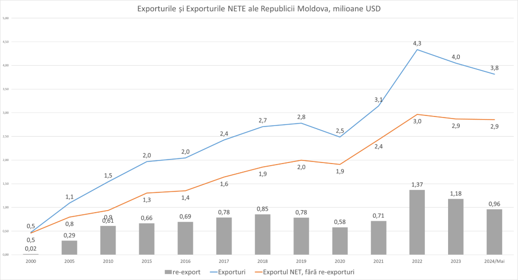 Un gând despre &8222;În luna mai 2024, exporturile moldovenești au continuat să scadă pentru a 15 lună consecutiv&8221;