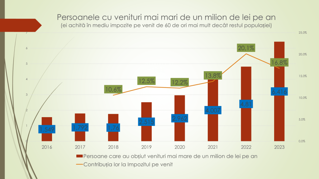 Vorbind despre persoanele cu venituri mai mari de un milion de lei pe an, Veaceslav Ioniță a declarat că a crescut rapid numărul acestor persoane. Dacă în 2016 au fost 1549 de persoane, în 2020 sa ajuns la 2962 de persoane și care contribuiau cu 12,2% din totalul impozitelor la stat din veniturile lor. În 2023, aceștia au ajuns la 6416 persoane, care deja plăteau 16,8% din totalul impozitelor la stat din venitul lor salarial. „Contribuția lor la plata impozitului pe venit, este de 60 ori mai mult decât ceilalți angajați. Astăzi avem un milion și 500 de mii de persoane care își declară veniturile. A crescut puternic acest număr. Iar numărul celor milionari din acest număr este extrem de mic și ei achită circa 17din toate impozitele pe venit acumulate de stat”, a declarat Veaceslav Ioniță.