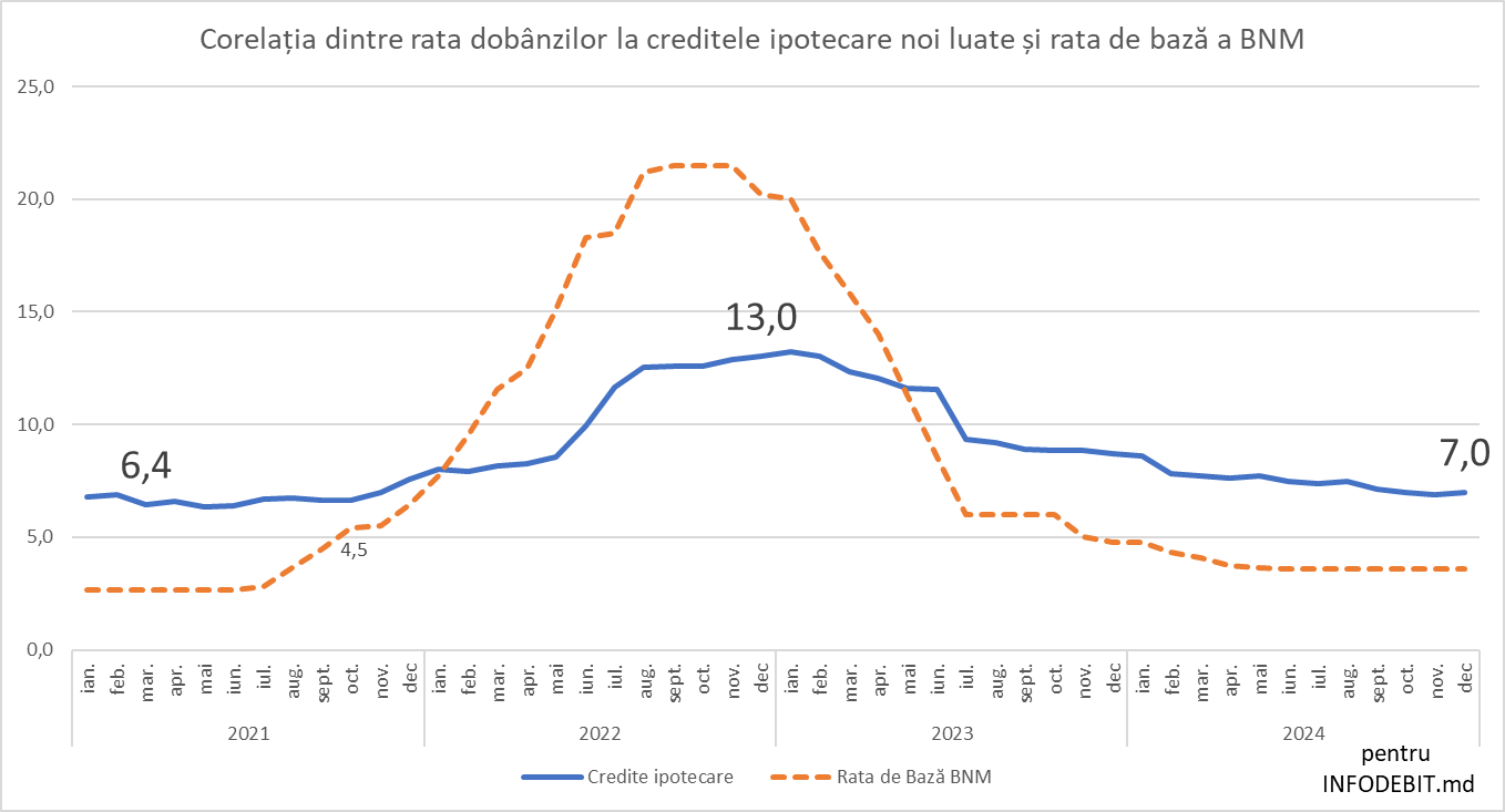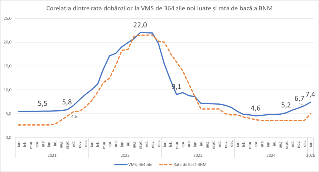 Pe 5 februarie 2025, Banca Națională a Moldovei (BNM) a majorat pentru a doua oară în acest an rata de bază, ajungând la 6,5% față de 3,6% la începutul anului. Scopul principal al acestei decizii este temperarea inflației, care a accelerat la sfârșitul anului 2024 și se îndreaptă spre 10% anual.