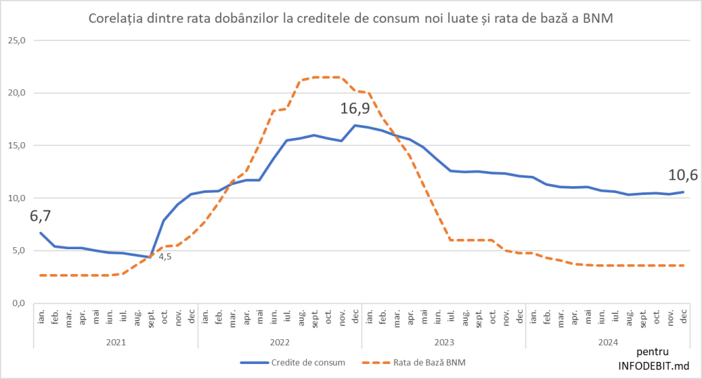 🔹 Obiectivul BNM este să reducă inflația prin descurajarea consumului pe bază de credit, însă experiența din 2024 arată că moldovenii s-au adaptat la dobânzi mari și continuă să se împrumute.