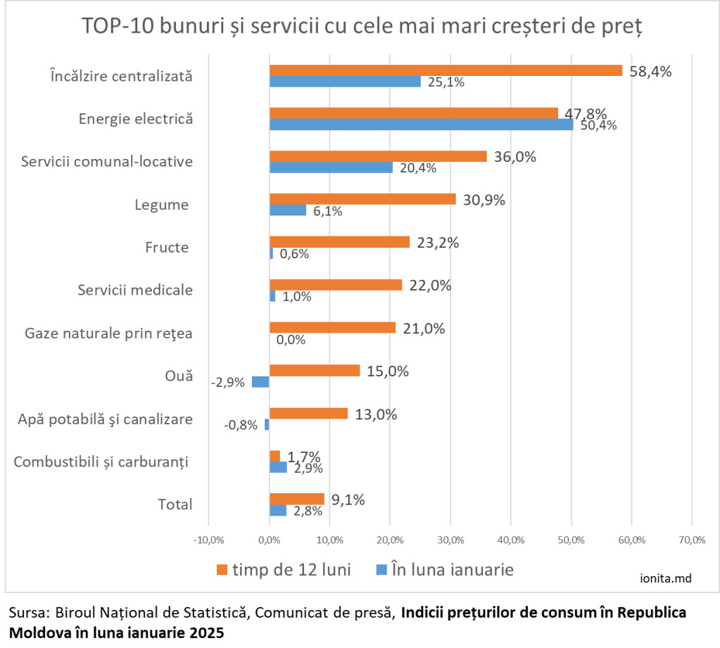 2️⃣ Încălzirea centralizată – +58,4% într-un an (cu un salt de +25,1% doar în ianuarie).