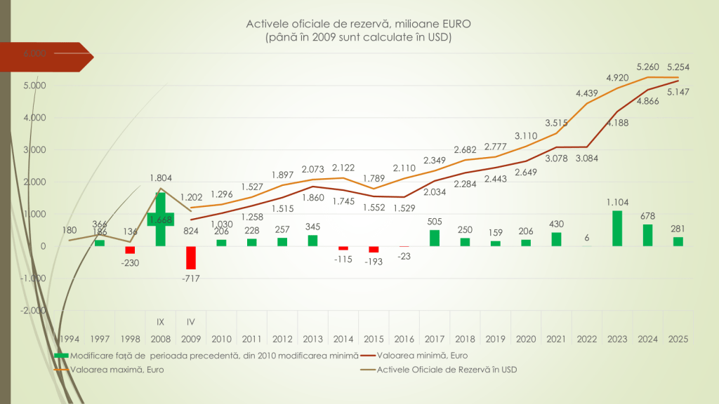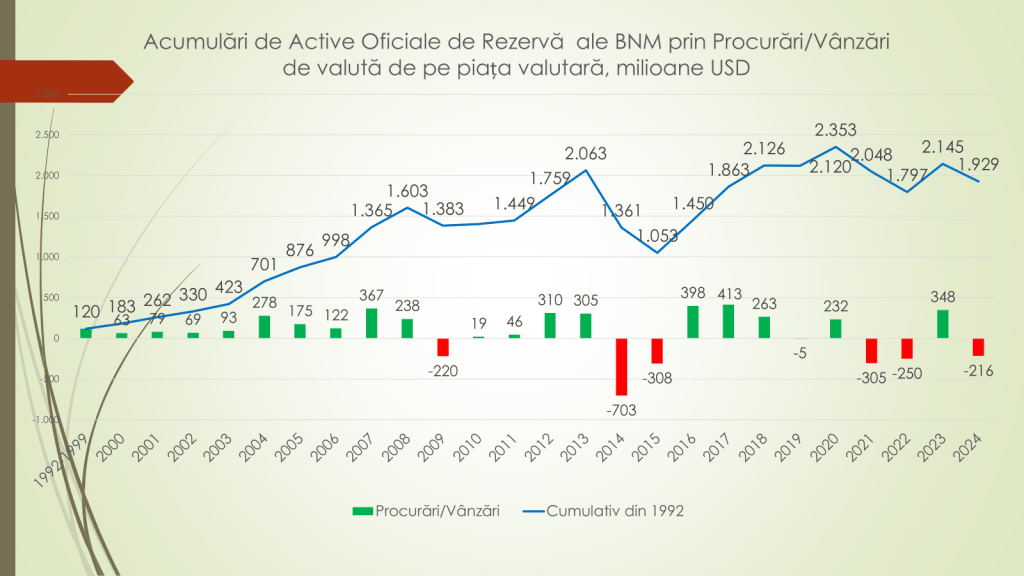 „Chiar dacă de câteva luni avem un micro șoc pe piața valutară, BNM a intervenit liniștit pentru a vinde valută, iar vânzările pe care le-a făcut nu a afectat practic deloc rezervele sale valutare. Fie se completează din vânzările pe care le fac cetățenii sau din valuta care intră în țară prin diferite programe și suporturi de susținere”, a mai spus Veaceslav Ioniță.