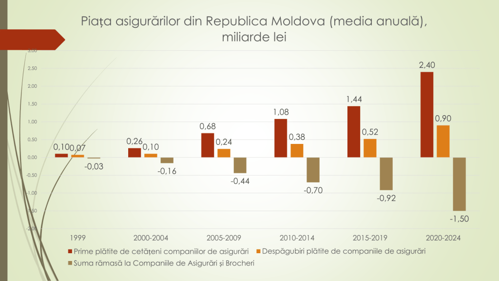 - În ultimii 25 ani (2000-2024), consumatorii moldoveni au achitat prime ajustate la inflație în valoare de 83 miliarde lei, primind înapoi doar 29 miliarde lei.