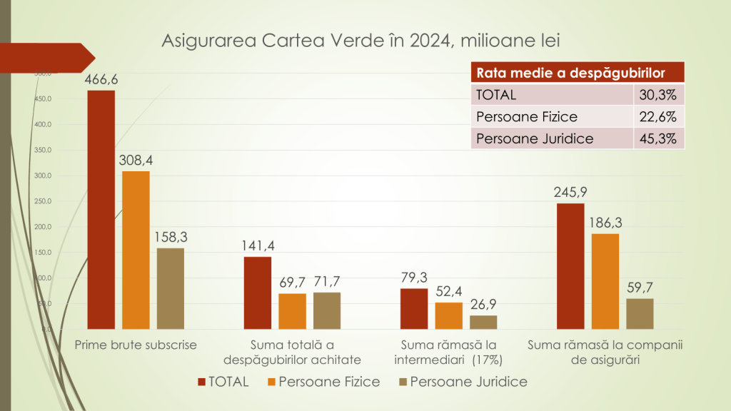 - În 2023-2024, aproximativ 42% din polițele Cartea Verde au fost intermediate prin brokeri, iar comisionul mediu a fost de 40%.
