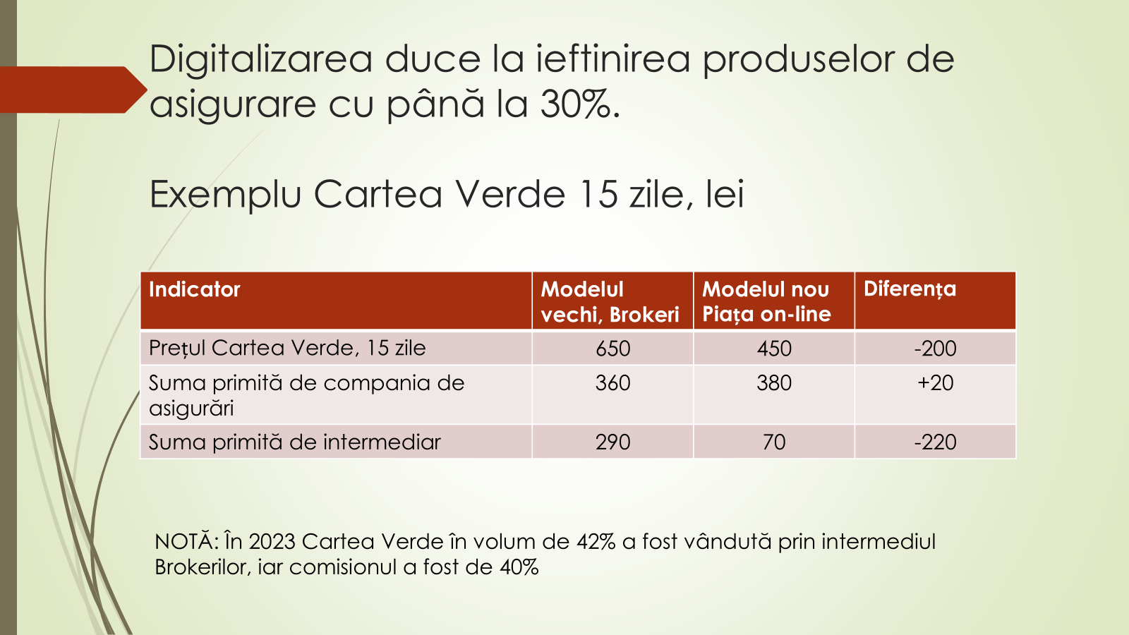 - În 2023-2024, aproximativ 42% din polițele Cartea Verde au fost intermediate prin brokeri, iar comisionul mediu a fost de 40%.