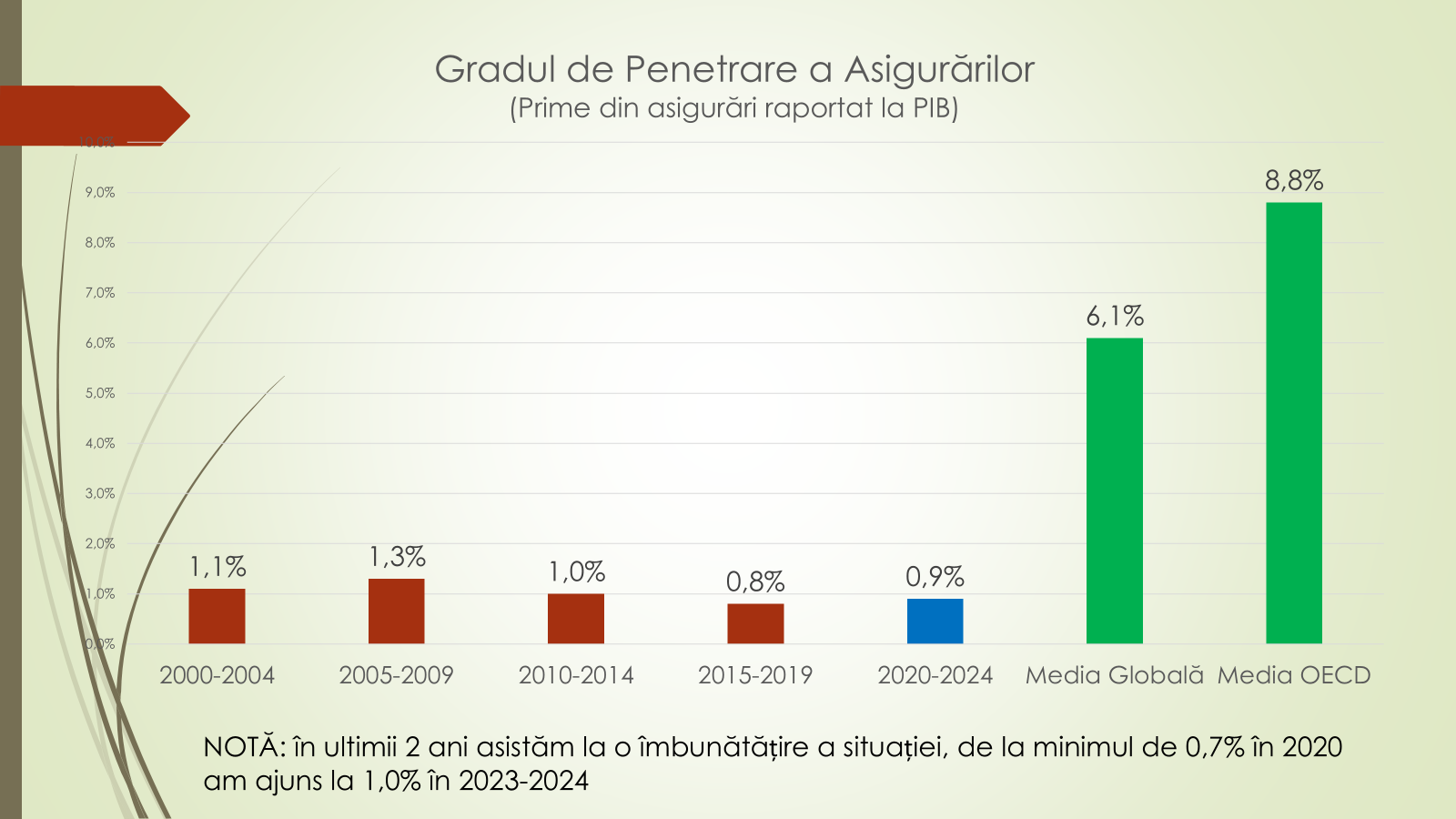 În ultimii ani, piața asigurărilor din Republica Moldova s-a caracterizat prin lipsă de transparență, concurență limitată și tarife nejustificat de mari. În 2020, acest sector a atins minimul istoric de penetrare a pieței, reprezentând doar 0,7% din PIB. Totuși, reforma implementată recent de Banca Națională a Moldovei (BNM) a generat o revenire notabilă, cu o creștere a penetrării pieței la 1,0% din PIB în perioada 2023-2024.