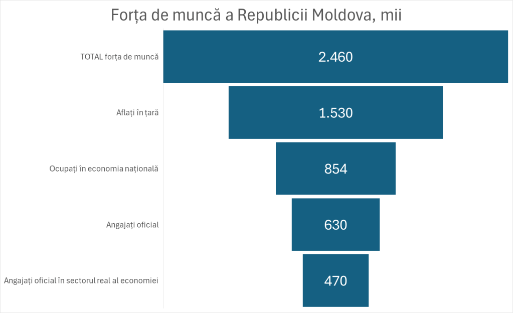 1. […] Pe hârtie, Moldova are 2.460.000 de cetățeni apți de muncă. Dar realitatea este mult mai sumbră. Aproape 40% dintre ei (930.000) au plecat peste hotare în căutarea unui trai mai bun. 1.530.000 au rămas în țară, dar nici aceștia nu contribuie cu toții la economia națională, transmite SafeNews.md cu referire la statistica efectuată de către Veaceslav Ioniță. […]