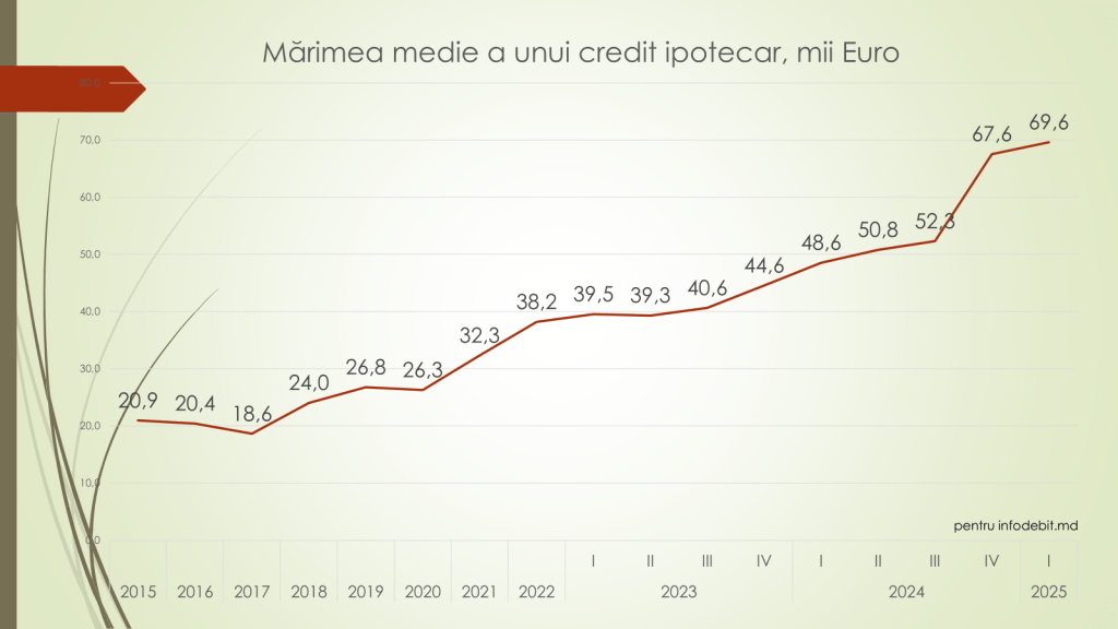 - În T1 2025, valoarea medie a unui credit ipotecar s-a stabilizat la 69.600 EUR, menținând nivelul record din T4 2024.