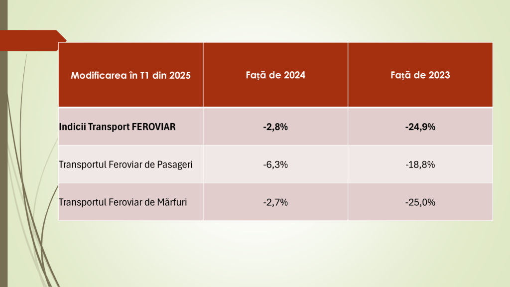 Potrivit expertului, activitatea transportului auto în Republica Moldova este într-o scădere pronunțată din 2024. În primul trimestru din acest an, față de 2024, în valoarea anuală, activitatea transportului auto de pasageri a crescut cu 0,3%, iar cea a transportului auto de mărfuri a scăzut cu 2,3%. Ramura transportului feroviar are cea mai proastă activitate, cu tendință clară negativă și pe viitor. În primele trei luni ale anului curent, în valoare anuală, față de 2024, transportul feroviar de pasageri a scăzut cu 6,3%, iar transportul feroviar de mărfuri – cu 2,7%.