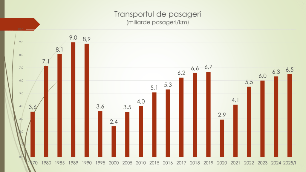 Economistul afirmă că în acest an, cel mai probabil în trimestru trei, transportul de pasageri vă depăși volumul record din 2019, care a fost de 6,7 mlrd/pasageri/km. Deja în primul trimestru din acest an, în valoare anuală, s-au transportat 6,5 mlrd/pasageri/km. Transportul de mărfuri, în primul trimestru din acest an, în valoare anuală, a scăzut la nivelul anilor 2016/2017.