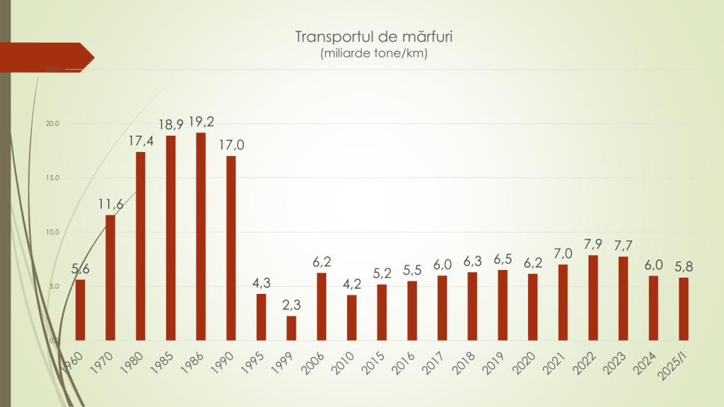 Referitor la transportul de mărfuri pe calea ferată, analistul economic a menționat că recordul a fost atins în 1990 – 46,5 milioane de tone. În trimestrul unu din 2025, în valoare anuală, a ajuns la 2,36 milioane de tone. Veaceslav Ioniță susține că în prezent sunt transportați circa 2,5% din pasagerii care au fost transportați cândva, de 40 de ori mai puțin. La transportul de mărfuri este o scădere de circa 20 de ori.