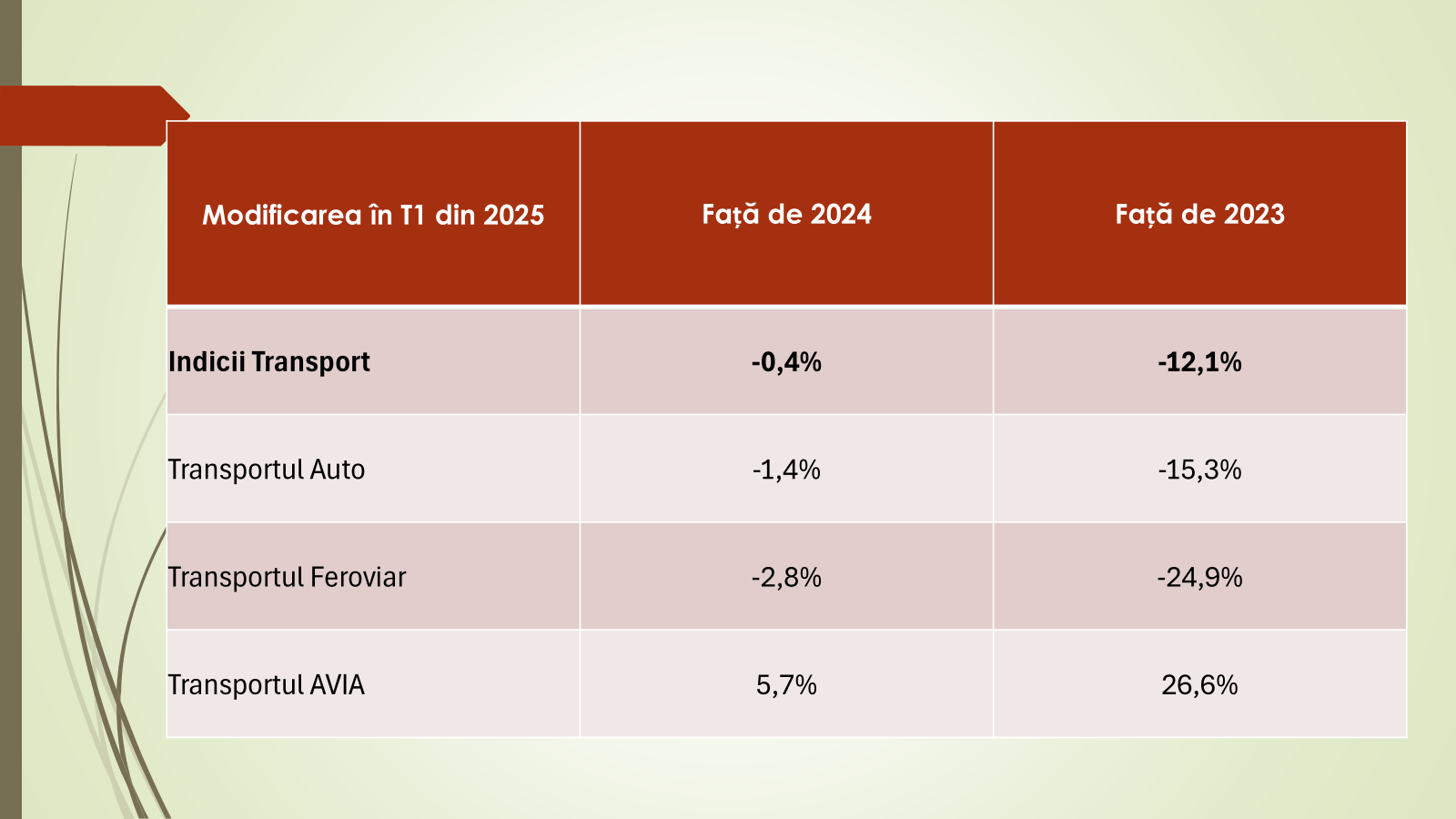 În primul trimestru din 2025, în valoarea anuală, activitatea ramurii de transport a înregistrat o ușoară scădere, în special transportul de mărfuri. Activitatea transportului auto a scăzut cu 1,4%, iar a transportului feroviar – cu 2,8%. Pe de altă parte, activitatea transportului avia a avut o creștere de 5,7%. Datele au fost prezentate vineri, 30 mai, 2025, de către Veaceslav Ioniță, expert în politici economice la IDIS „Viitorul”, în cadrul emisiunii săptămânale „Analize economice cu Veaceslav Ioniță”.