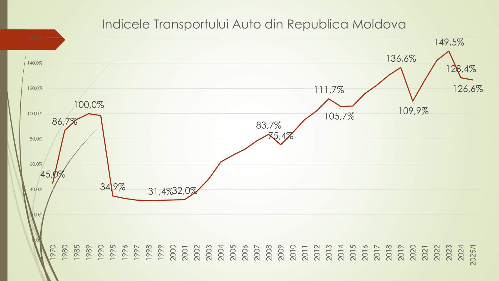 Potrivit expertului, activitatea transportului auto în Republica Moldova este într-o scădere pronunțată din 2024. În primul trimestru din acest an, față de 2024, în valoarea anuală, activitatea transportului auto de pasageri a crescut cu 0,3%, iar cea a transportului auto de mărfuri a scăzut cu 2,3%. Ramura transportului feroviar are cea mai proastă activitate, cu tendință clară negativă și pe viitor. În primele trei luni ale anului curent, în valoare anuală, față de 2024, transportul feroviar de pasageri a scăzut cu 6,3%, iar transportul feroviar de mărfuri – cu 2,7%.
