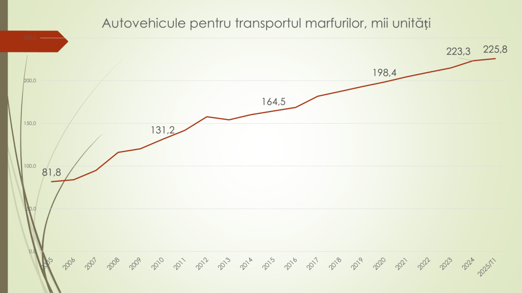 Analistul economic menționează că odată ce calea ferată nu mai era o soluție pentru transportul de mărfuri, intensiv au fost procurate autovehicule. Dacă în 2005 erau 81,8 mii de autovehicule, în primul trimestru din 2025 s-a ajuns la 225,8 mii/unități, în condițiile în care în primul trimestru din acest an, volumul de mărfuri transportat a scăzut nesemnificativ, iar numărul de unități auto a crescut. Astfel, numărul de mașini utilizate la transportul mărfurilor este mare pentru un volum de mărfuri în scădere.