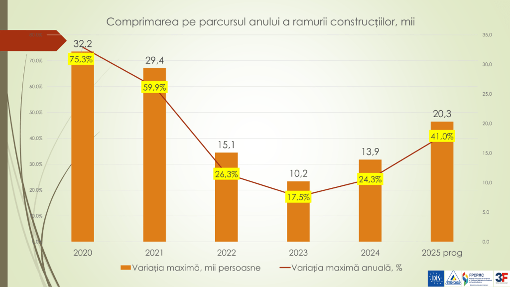 Sectorul de construcții din Republica Moldova se confruntă cu o instabilitate majoră a forței de muncă, caracterizată printr-un grad ridicat de muncă neformală, lipsa dezvoltării profesionale și o fluctuație mare a angajaților, ceea ce subminează calitatea, siguranța și sustenabilitatea pe termen lung a acestui domeniu. Declarații în acest sens a făcut Veaceslav Ioniță, expert în politici economice la IDIS „Viitorul”, vineri, 18 iulie, 2025, în cadrul emisiunii săptămânale „Analize economice cu Veaceslav Ioniță”.