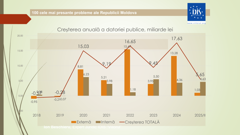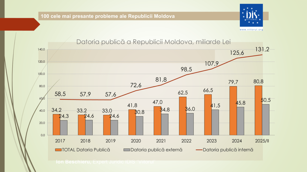 În același timp, datoria publică a crescut de la 124,6 miliarde de lei în 2024 la 131,2 miliarde de lei în prima jumătate a anului 2025. „Cel mai grav este că o mare parte din aceste împrumuturi interne sunt folosite pentru consum, nu pentru investiții productive”, a menționat analistul economic.