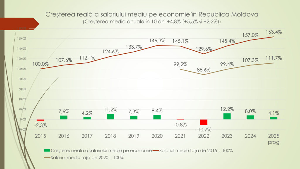 Salariul mediu lunar este estimat la 15.700 de lei, cu o creștere reală de 4,1%, în timp ce pensia medie pentru limită de vârstă a depășit pentru prima dată pragul de 4.000 de lei, ajungând la 4.200 de lei. Totuși, inflația ridicată din ultimii ani a diminuat semnificativ impactul acestor majorări. Rata inflației este estimată la 7,1% în 2025, nivel considerat ridicat, dar mult sub vârful de 34% din 2022. În lipsa unor factori majori de presiune, inflația ar putea coborî spre 5% în 2026. Din 2020 până în prezent, prețurile au crescut cumulativ cu 77%, afectând puternic puterea de cumpărare a populației.