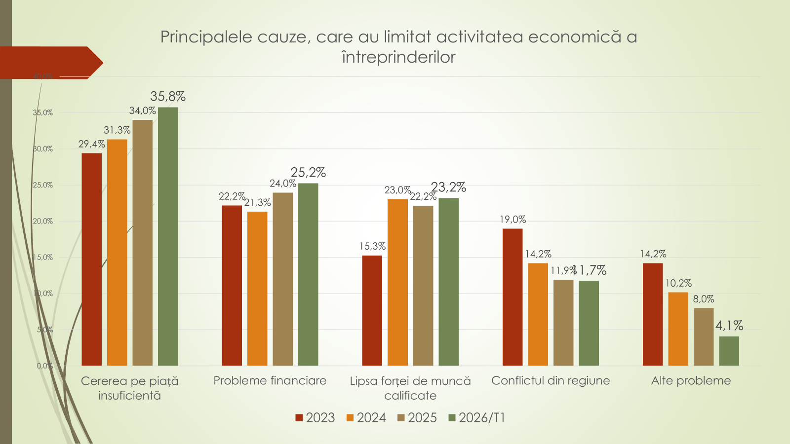 Potrivit lui Veaceslav Ioniță, cea mai presantă problemă pentru agenții economici în trimestrul I 2026 este piața de desfacere sau cererea insuficientă. Aceasta este urmată de dificultățile financiare, lipsa forței de muncă calificată și impactul războiului dus de Federația Rusă împotriva Ucraina. În opinia sa, mediul de afaceri din Republica Moldova începe anul 2026 într-o notă de prudență optimistă, cu semnale de stabilizare și creștere moderată, dar cu vulnerabilități persistente în industrie și pe partea cererii interne.