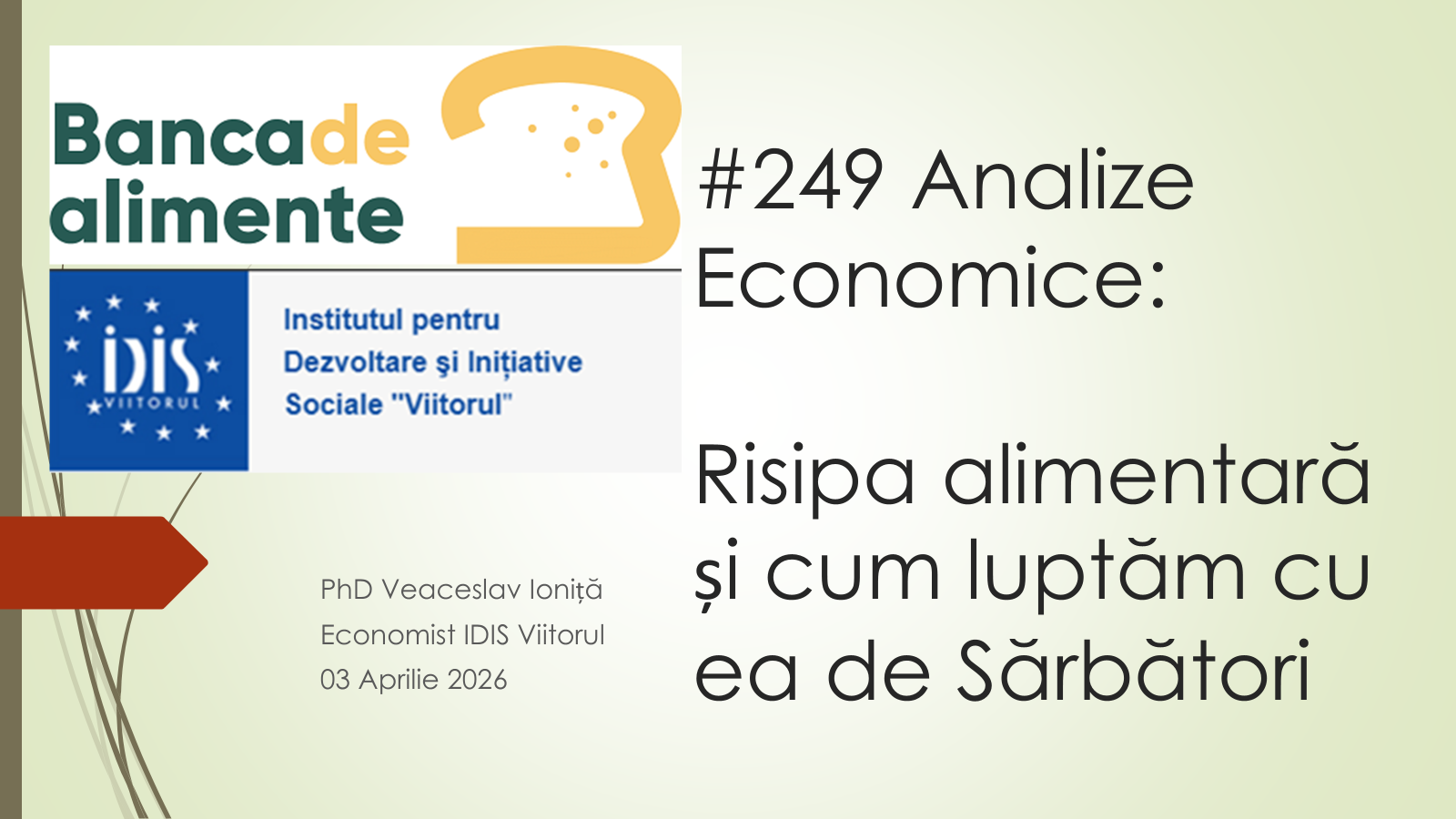 Veaceslav Ioniță, expert în politici economice la IDIS „Viitorul” a declarat vineri, 3 aprilie, 2026, în cadrul emisiunii săptămânale „Analize economice cu Veaceslav Ioniță”, că în fiecare an, în țară sunt risipite circa 180 de mii de tone de alimente, însă doar 0,15% (26 de tone) sunt recuperate prin intermediul Banca de Alimente din Moldova. Deși organizația, în colaborare cu rețelele comerciale, a reușit să salveze cantități în creștere în ultimii ani: 63 tone în 2022, 132 tone în 2023, 211 tone în 2024 și 124 tone în 2025, impactul rămâne limitat în raport cu dimensiunea problemei.